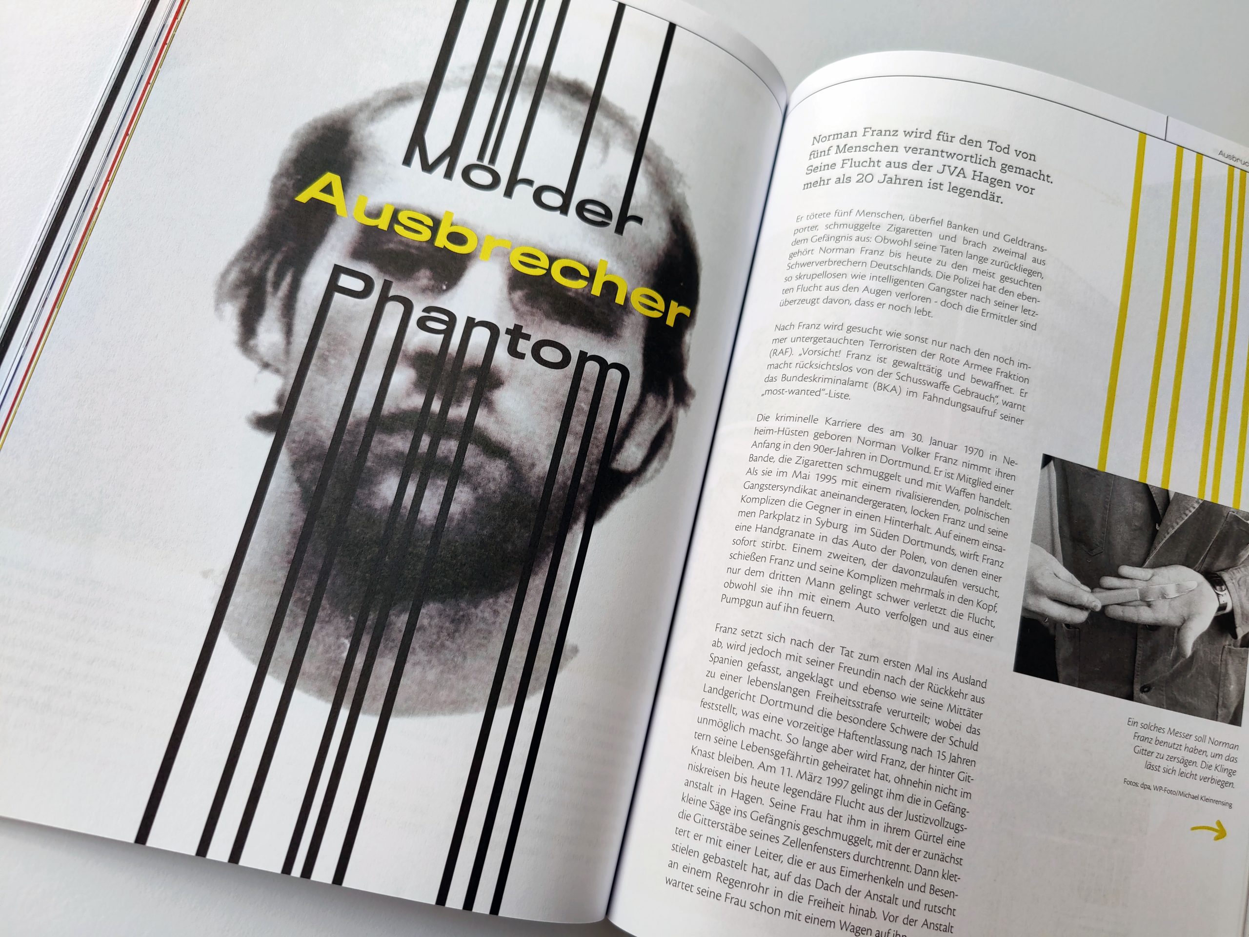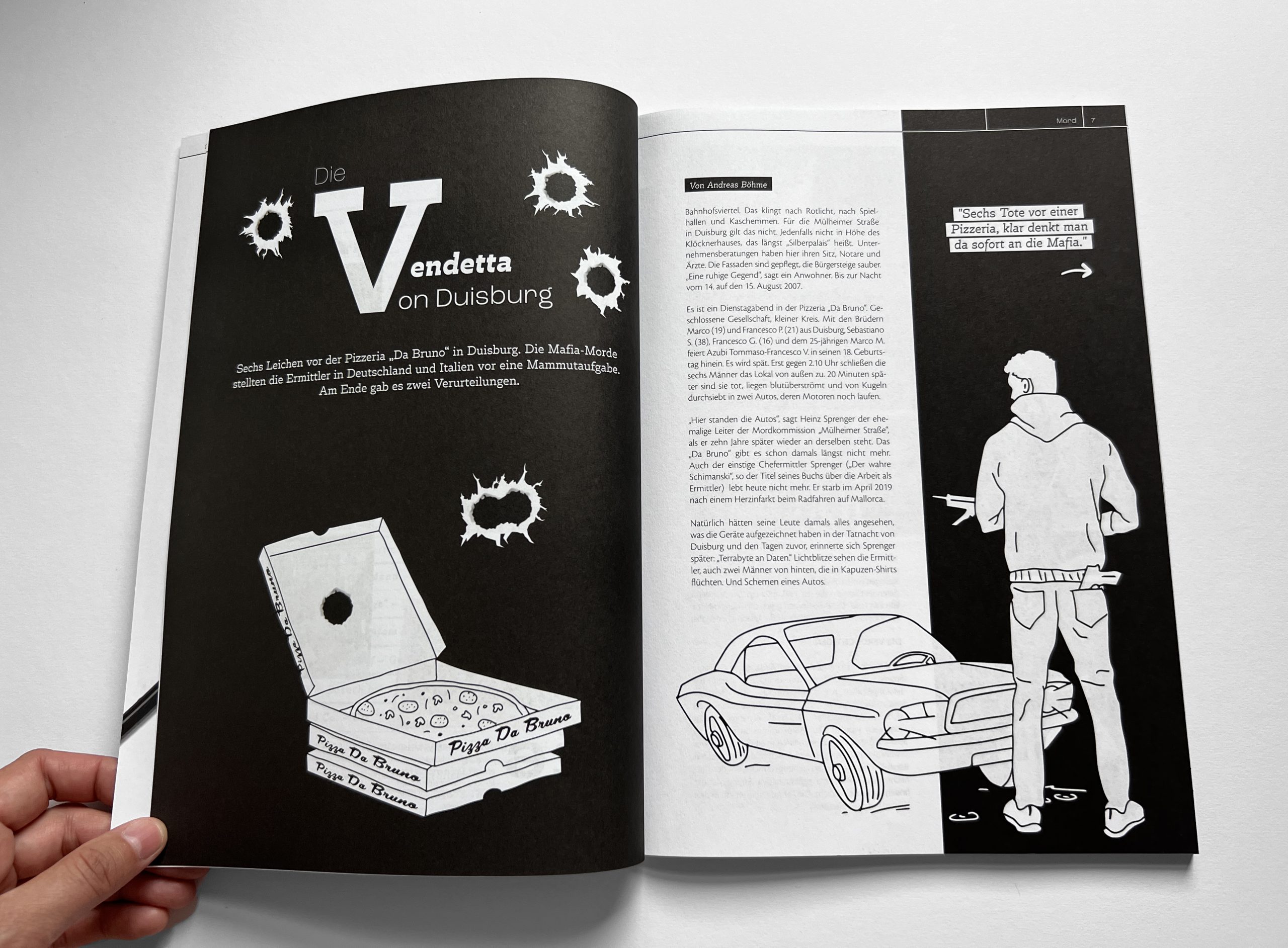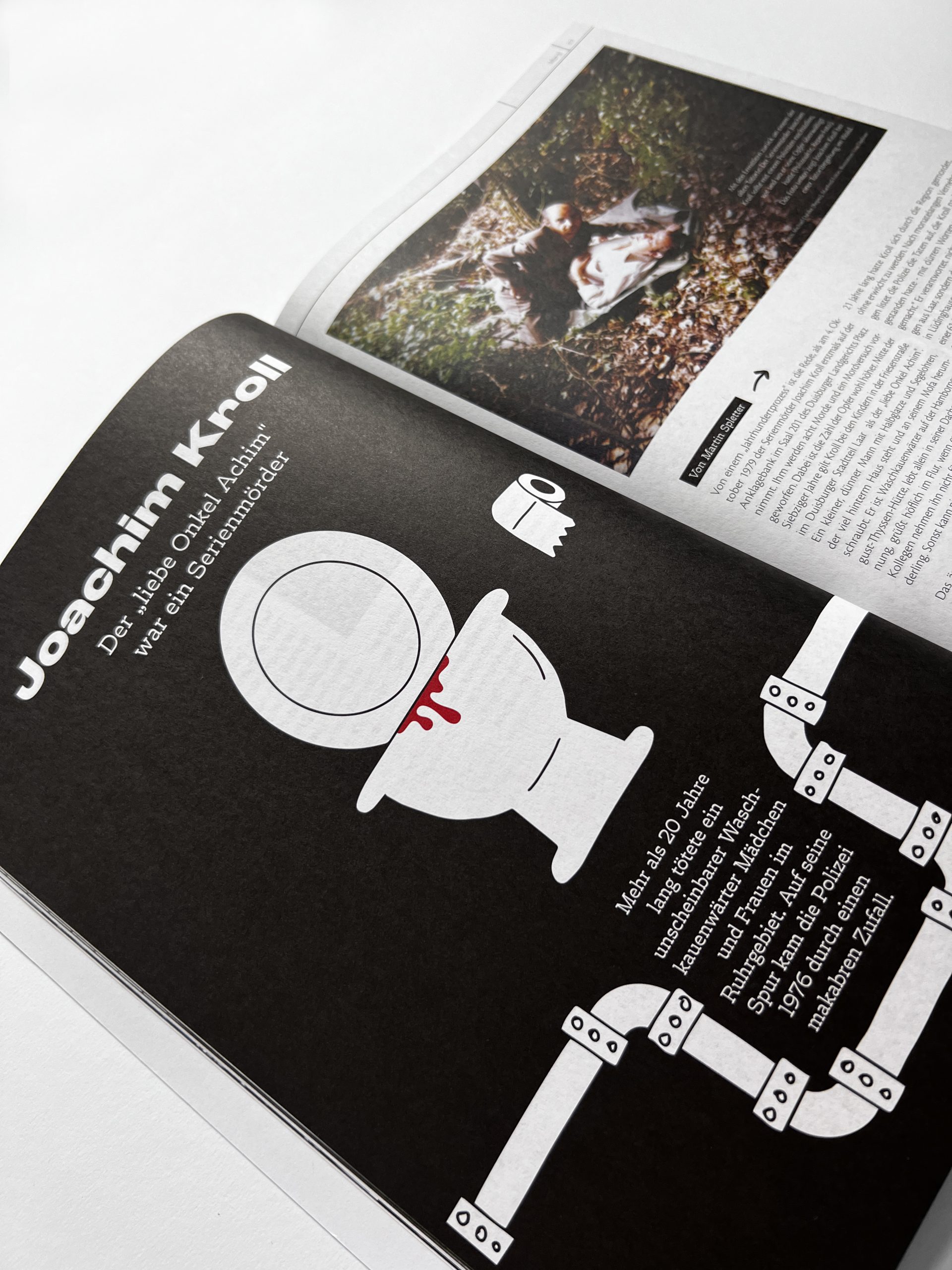 Gestaltung, Illustration und Konzeption des True Crime Magazins „Akte NRW“.