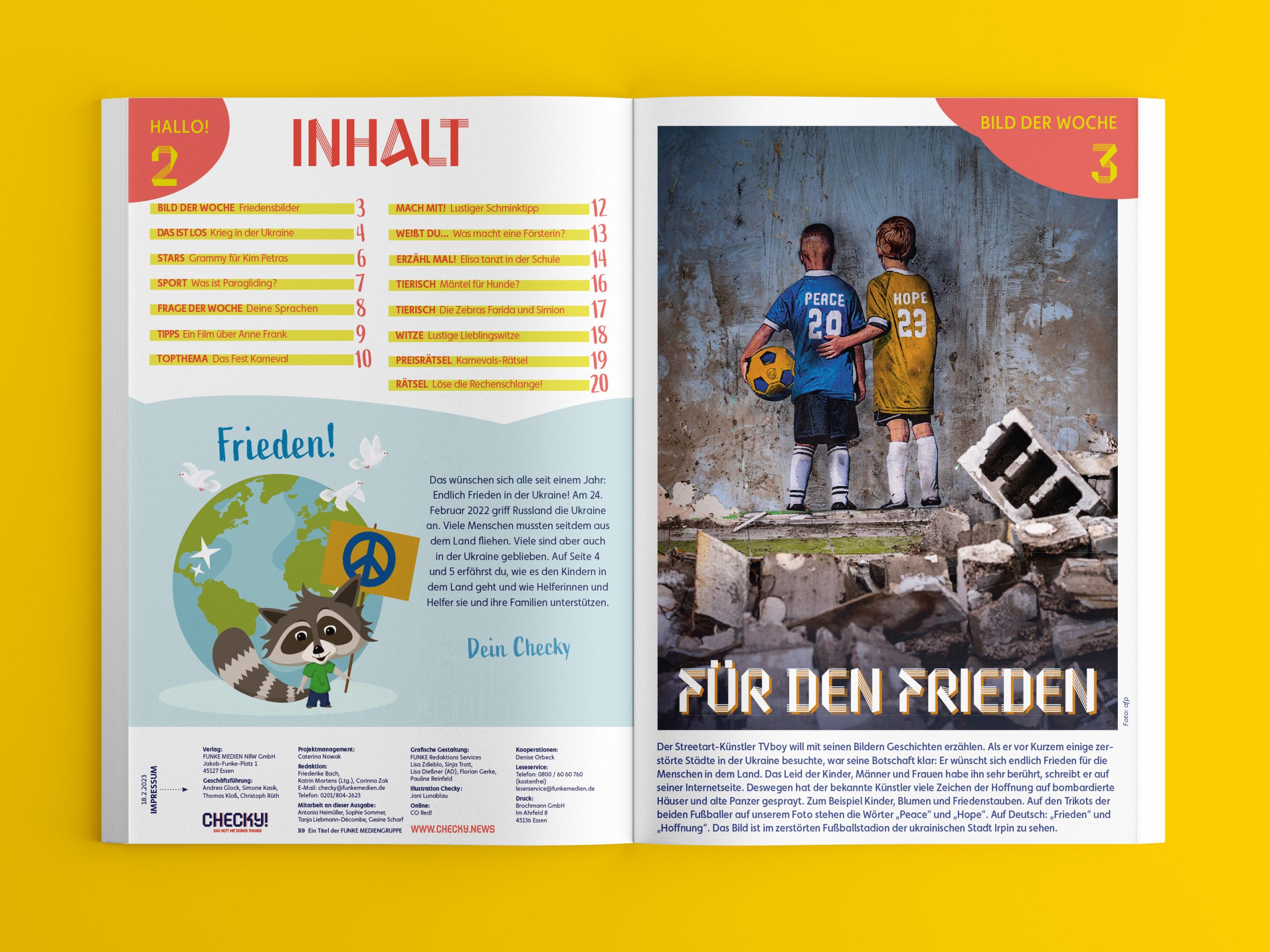 Gestaltung und Illustration der Kinderzeitung „CHECKY!“.