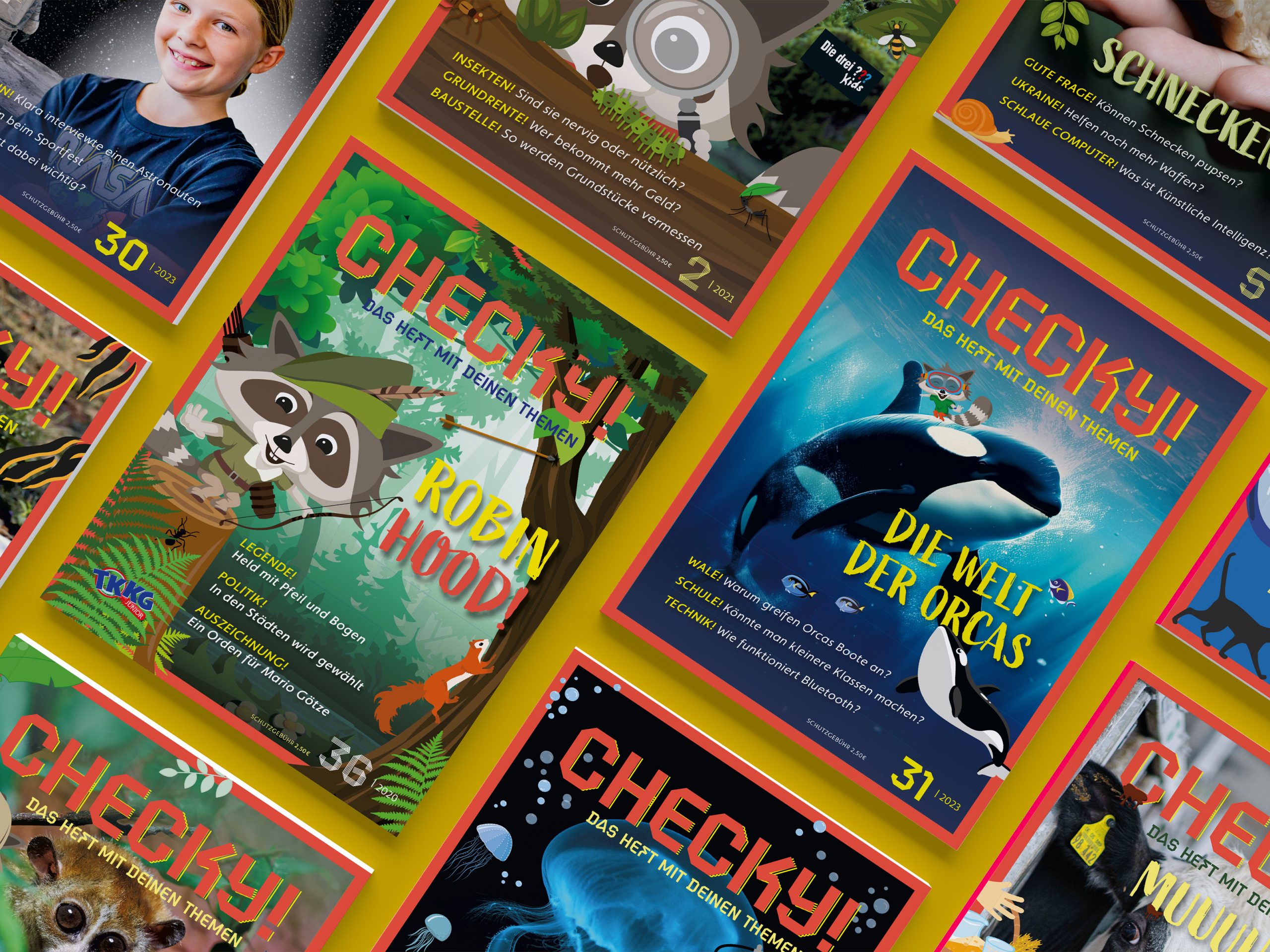 Die Welt verstehen mit der Kinderzeitung CHECKY! In CHECKY! finden Kinder zwischen 6 und 12 Jahren jede Woche aktuelle Nachrichten sowie spannende Wissensthemen – altersgerecht erklärt und mit vielen Extras, die Lust am Lesen wecken. So sind junge Leserinnen und Leser immer gut informiert! Erscheinungsweise: Wöchentlich, 20 Seiten. Entwurf und Layout: Oliver Schäfer.