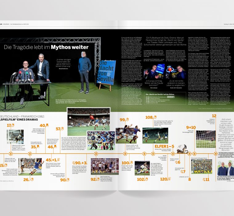 Gestaltung und Konzeption der Beilagen „Mythos & Moderne“, „Spielräume- Das Kulturfestival zur EURO 2024“ und „In Motion – Art & Football“.
